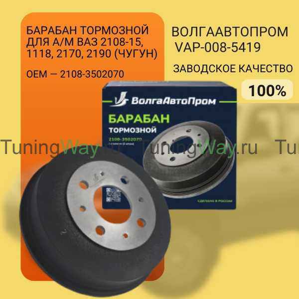 Барабан тормозной для а/м ВАЗ 2108-15, 1118, 2170, 2190 (чугун) от ВолгаАвтоПром арт. VAP-008-5419