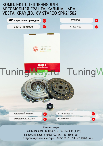 * Сцепления STARCO выбирают профессионалы и опытные автомобилисты.