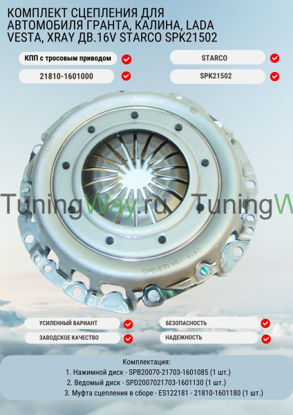 Комплект сцепления для автомобиля Лада Гранта, Калина 2; КПП с тросовым приводом 16V