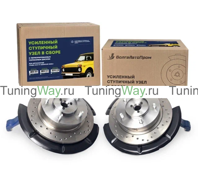 2 поворотных кулака на обе стороны с запрессованными подшипниками SKF VKBA3551 в сборе с усиленными ступицами, сальниками, ПЕРФОРИРОВАННЫМ тормозным диском от ВолгаАвтоПром, грязезащитными кожухами и колесными шпильками.