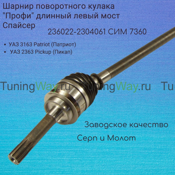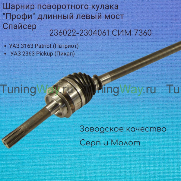 Шарнир поворотного кулака "Профи" длинный левый мост Спайсер (Серп и Молот) 236022-2304061