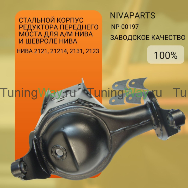 Обладает высокой прочностью в отличии от штатного алюминиевого корпуса, изготовлен из стали для эксплуатации автомобиля в условиях бездорожья. Предназначен для увеличения срока службы редуктора в тяжелых условиях эксплуатации.